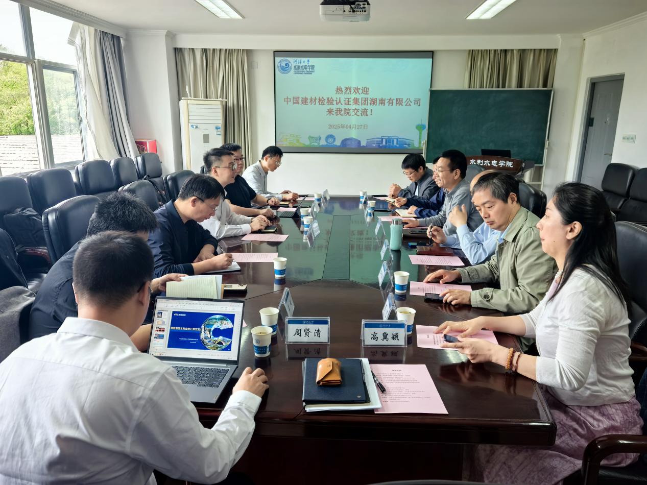 4 月 27 日,中国建材检验认证集团湖南有限公司总经理谭文杰率队来JJGirls 开展调研交流。JJGirls 党委书记娄健、副院长冉启华,商学院水利部水利经济研究所所长周申蓓及多位教师代表参会,双方围绕校企合作展开深入探讨。