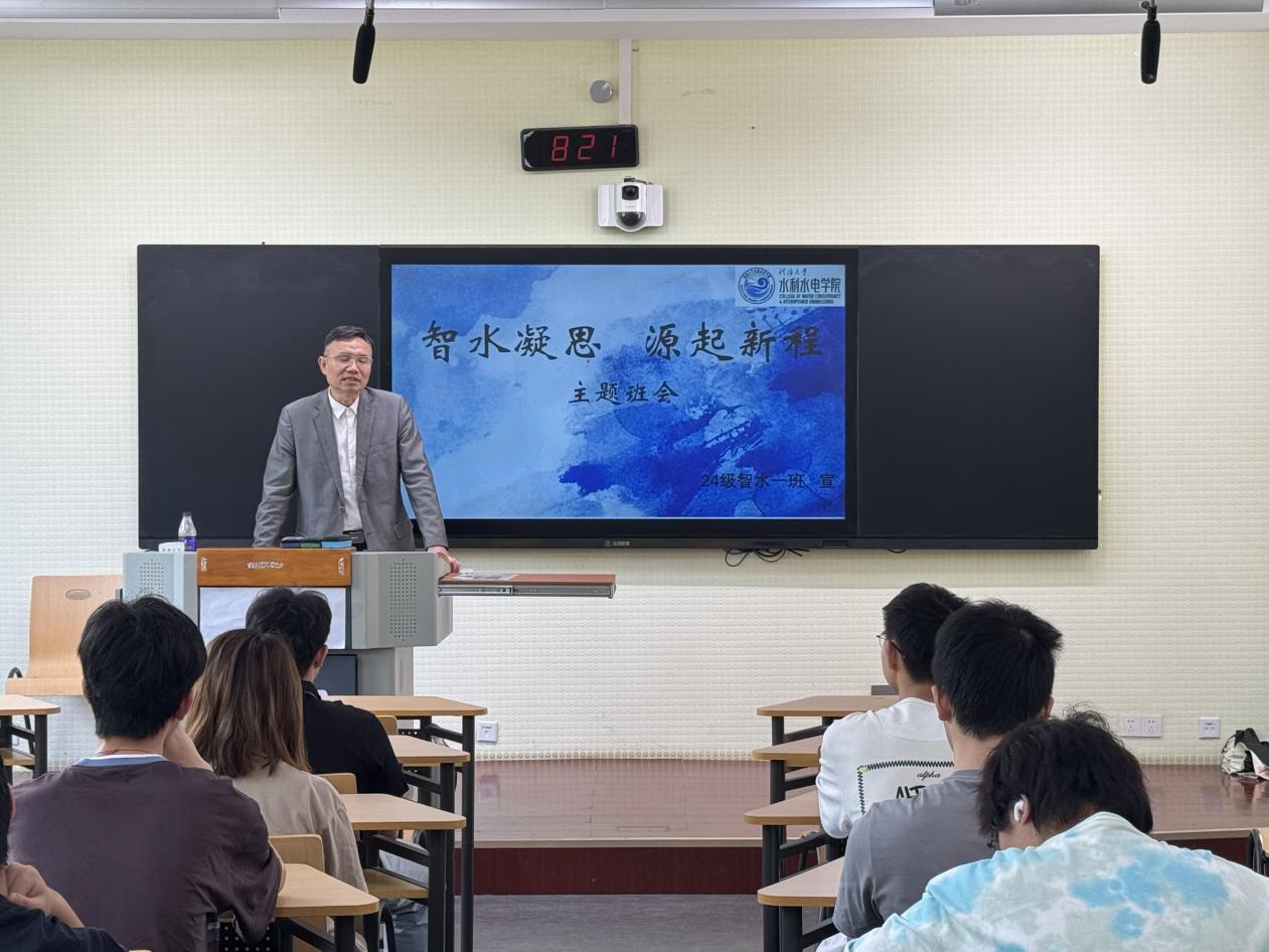 魏有兴部长从社会需求角度出发,提出“实践、思考、应用”三结合理念,鼓励2024级智慧水利专业同学,一是深入社会调研,多多走出校园,通过实地考察了解行业动态;二是培养批判思维,面对海量信息需独立思考,形成理性判断;三是加强理论落地实践,以学科竞赛、科研项目为载体,将知识转化为解决实际问题的能力。