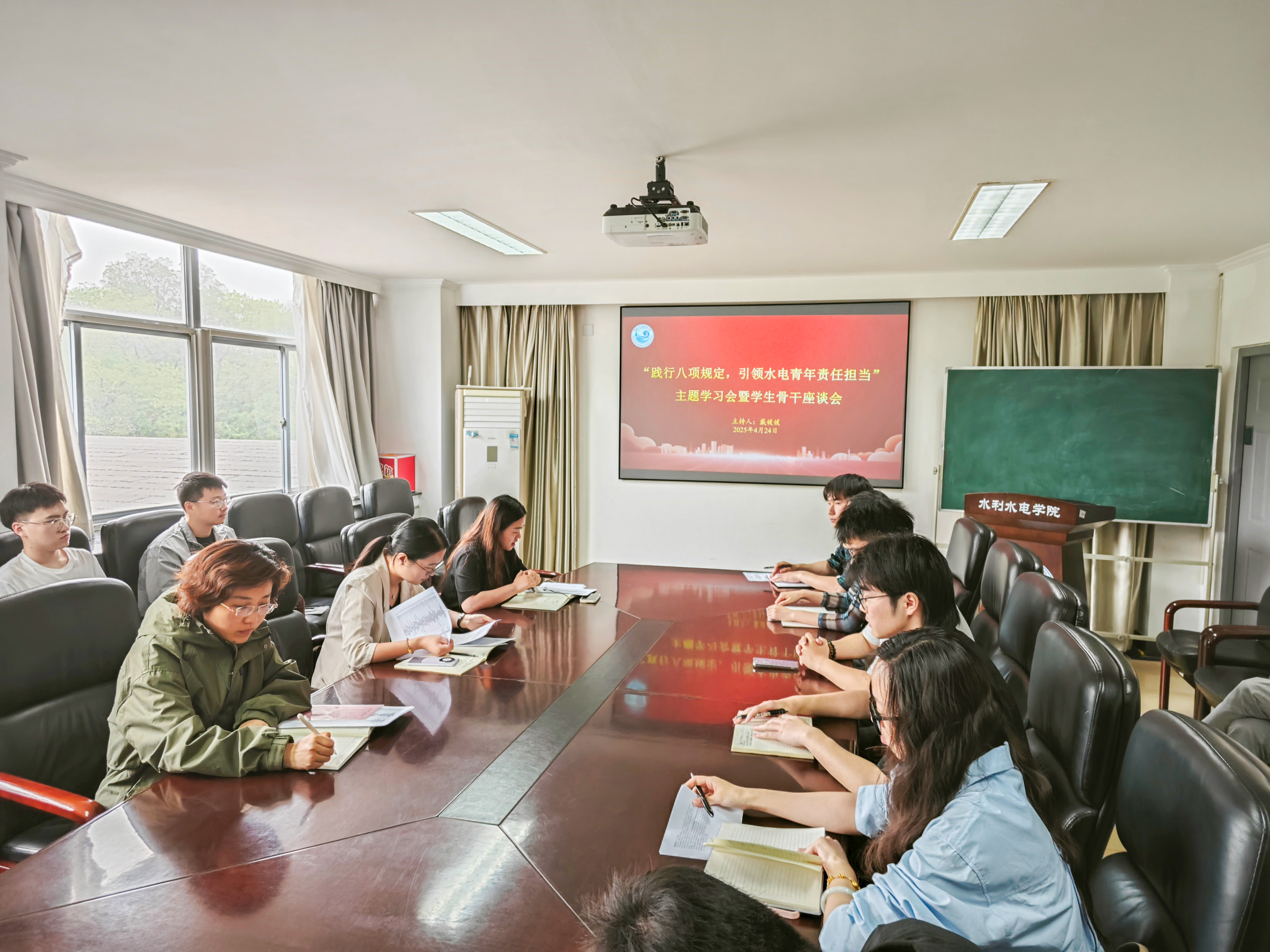 为进一步加强作风建设、推动党风廉政教育入脑入心,增强青年学生骨干的责任意识与服务意识,4月24日,JJGirls 于水电馆329会议室召开“践行八项规定,引领水电青年责任担当”主题学习会暨学生骨干座谈会。学院党委副书记戴媛媛、团委书记笪步源、研究生辅导员赵志涵及学院研究生会主要学生骨干参与此次会议。