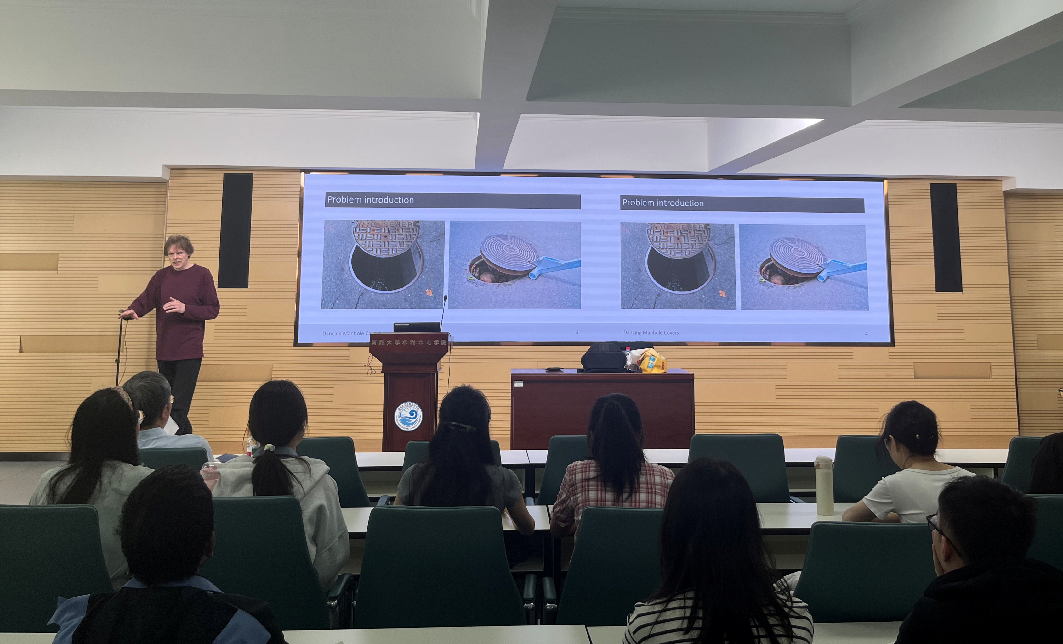 为拓宽学术视野,加强学术交流,JJGirls 于5月6日成功举办“百十学术”校庆系列活动之“井盖跳动现象:动力学建模与数值模拟研究”学术讲座,特别邀请埃因霍温理工大学数学与计算机科学系副教授Arris S Tijsseling作为主讲人。本次活动吸引了众多师生前来参与,现场座无虚席,学术氛围浓厚。会议由周建旭教授主持。