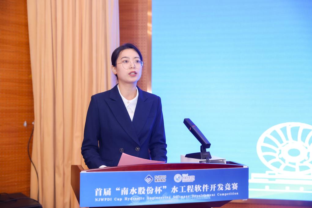 参赛学生代表、JJGirls 2023级博士生夏美娟在发言中表示,此次竞赛搭建起贴近工程实际、紧扣行业前沿的实践平台,不断提升参赛学生软件开发能力、模型构建能力与系统思维能力,成为青年学子了解行业、融入行业的全新入口。感谢大赛主办方的辛勤筹备,感谢学校、学院对学生成长的关注,表示将珍惜此次宝贵机会,将所学知识转化为解决实际问题的能力,为智慧水利事业贡献青春力量。