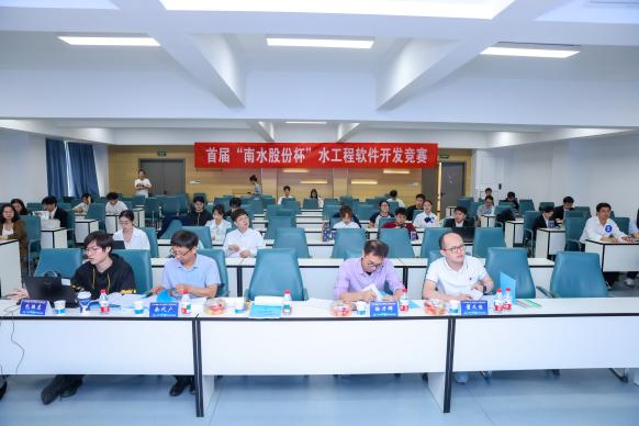 开幕式后,“南水股份杯”水工程软件开发竞赛正式开始。首届水工程软件开发大赛聚焦于工程软件二次开发、水力学计算、水库多目标优化调度、河网地区闸泵联合调度、水环境模拟等前沿方向,共有9组本科生队伍、13组研究生队伍进入决赛进行成果展示与项目答辩,分设2个会场同时答辩评审。