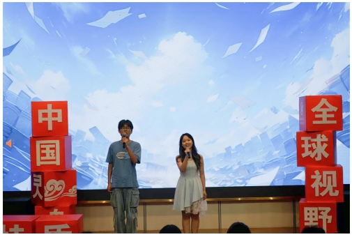 参赛选手表演结束后,水电院学生会成员、24级本科生胡致鹏和李佳欣携手以青春作结,用歌曲《关于青春》对话江河。