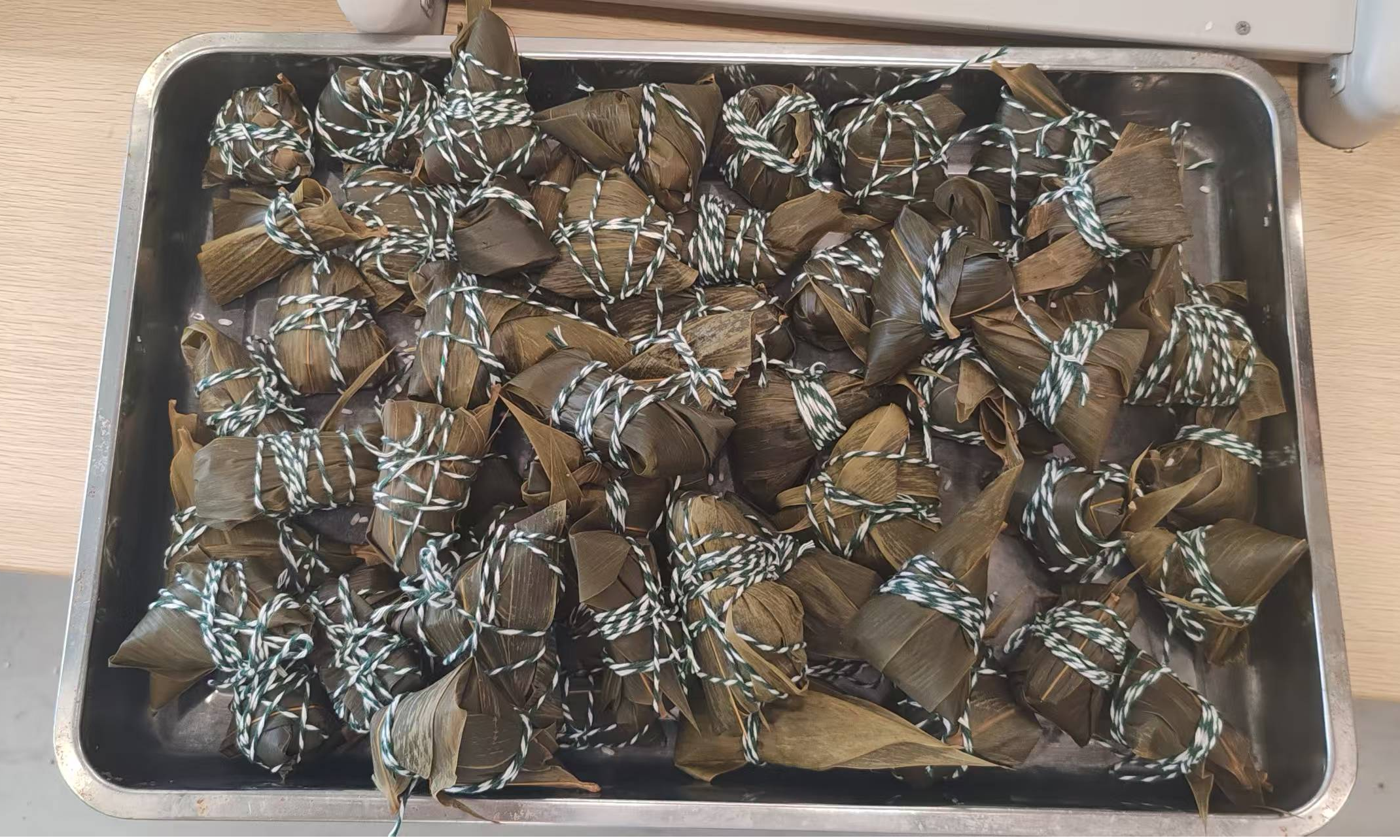 青叶传古韵,素手结安康。活动志愿者将提前准备好的粽叶、糯米、各色馅料以及细绳摆放在教室,同学们根据指引折叶、填米、捆扎,形态各异的粽子在略显生疏又充满热情的手中诞生,迅速将现场的欢乐氛围推至高潮。