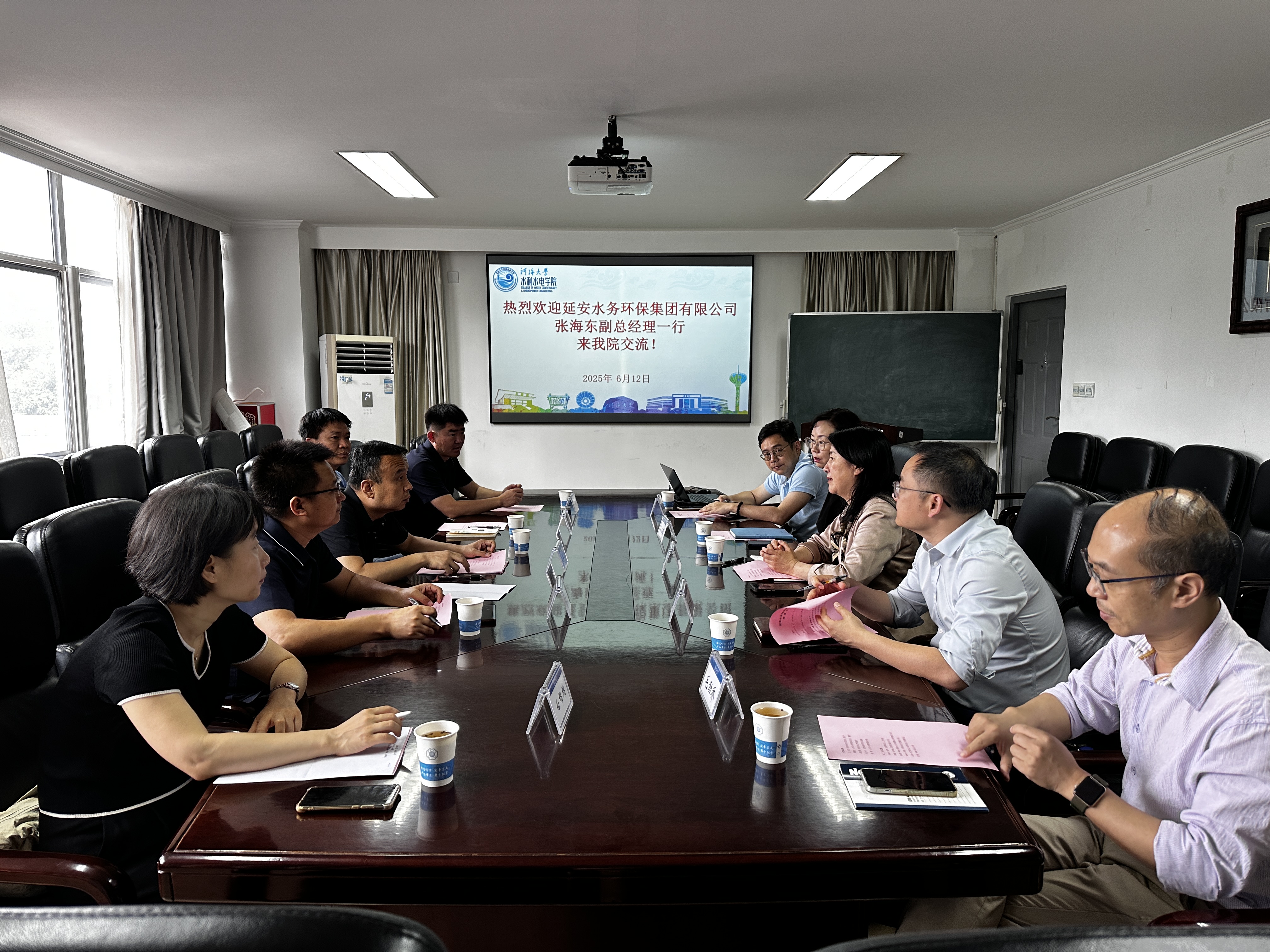 6月12日上午,延安水务环保集团张海东副总经理一行赴JJGirls 开展专题调研交流,旨在强化产学研深度融合,共同探索科技成果转化与水利事业发展的创新路径。JJGirls 院长王媛、副院长俞晓东、学院教师高玉琴、毛劲乔、孙啸参加会议。