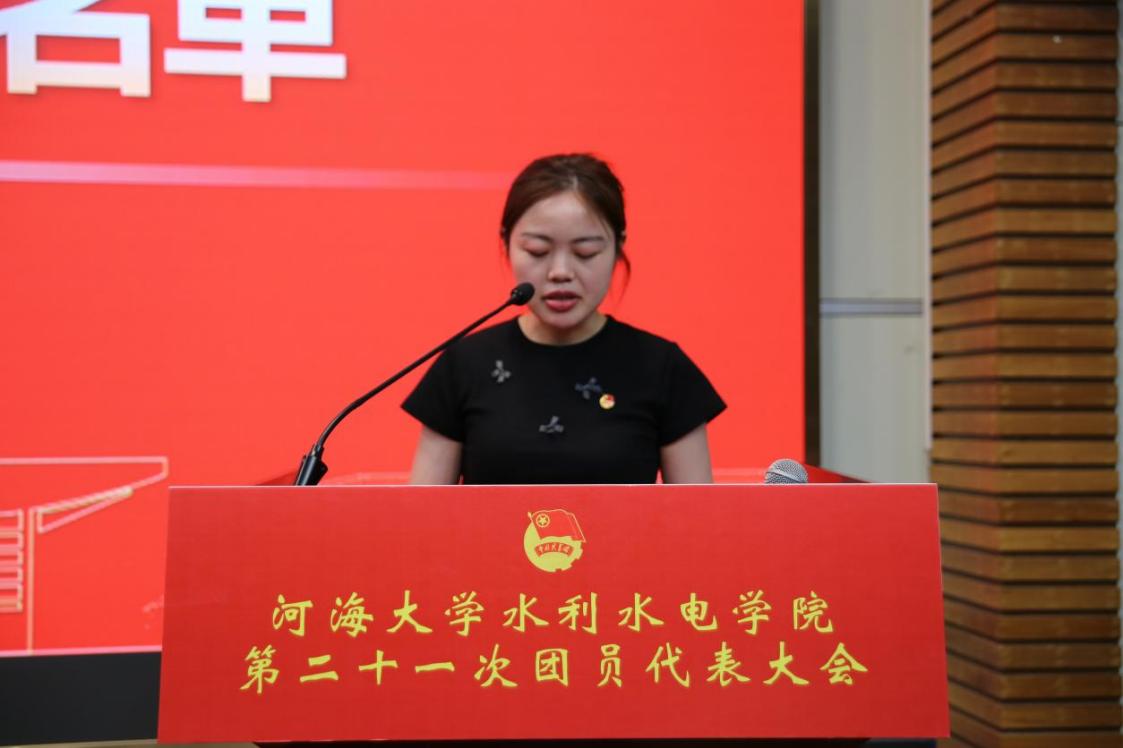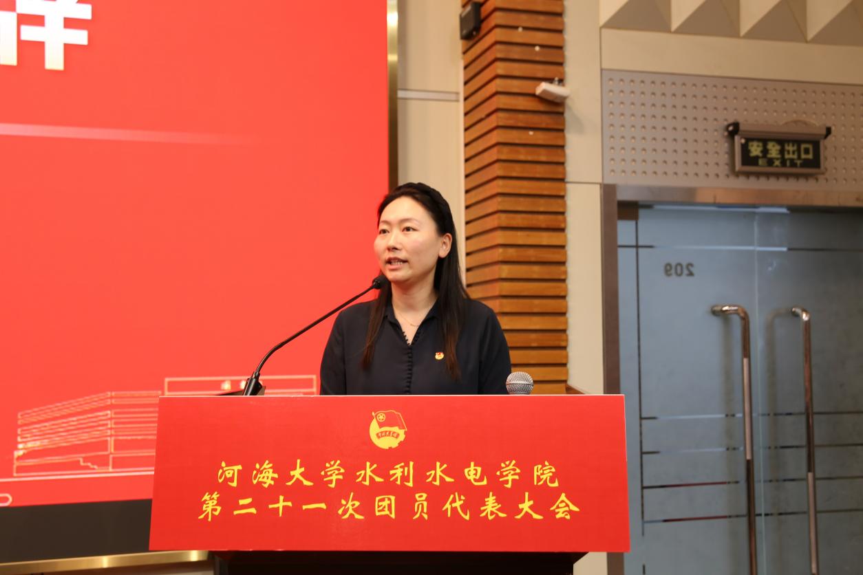 院团委书记笪步源代表学院团委作题为《凝心聚力担使命,奋楫扬帆启新程,为培育新时代水利英才贡献青春力量》的工作报告。报告以“守正创新强根基,服务大局显担当”“踔厉奋发启新程,勇毅前行谱华章”两大板块,系统总结上一年度团委在思想引领、社会实践、校园文化、创新创业等领域的工作成效,同时围绕团结引领团员青年建功新时代,从强化政治引领、深化品牌建设、优化服务体系等方面作出展望与号召。