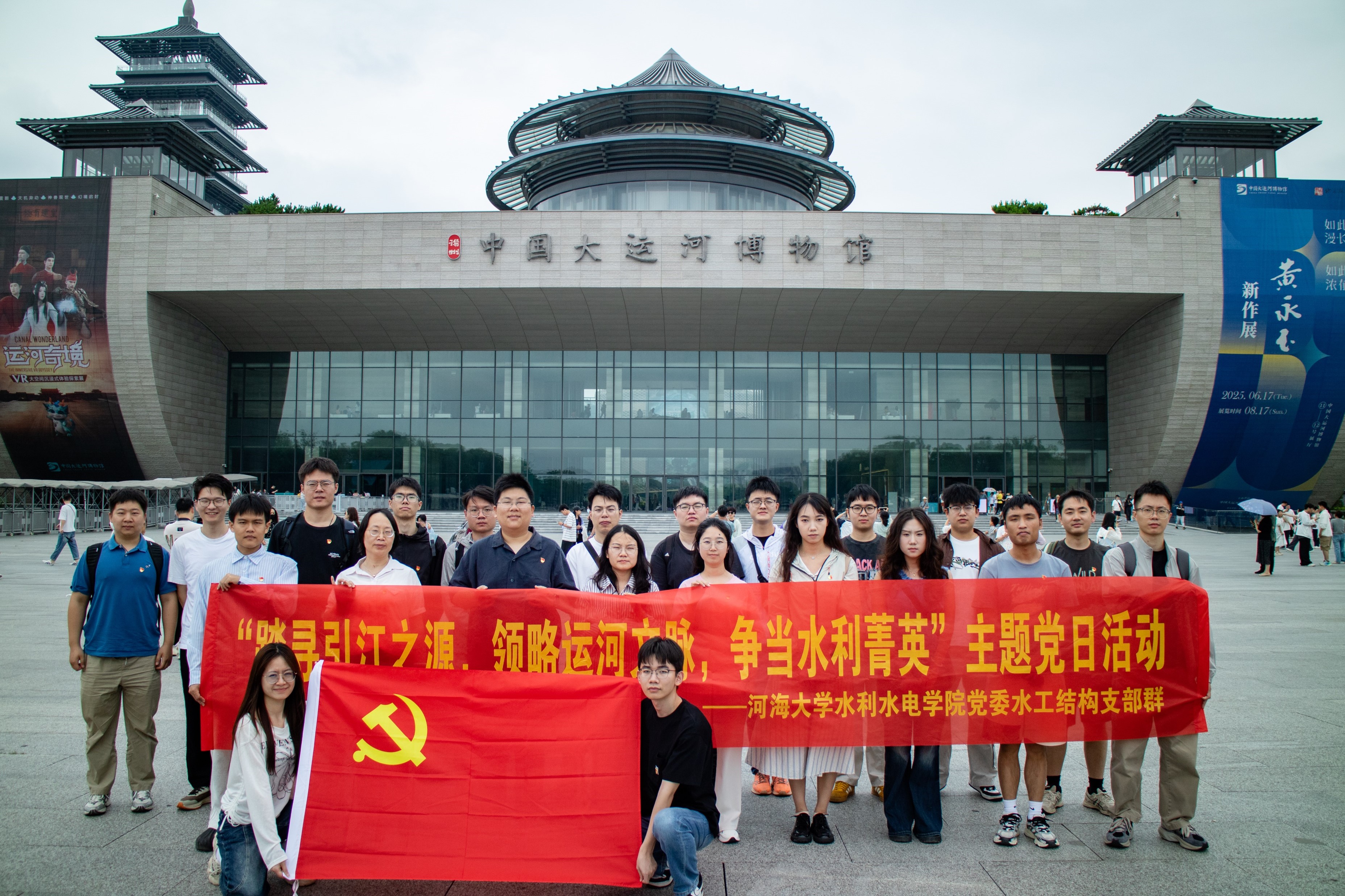 为深入学习习近平新时代中国特色社会主义思想和党的二十大精神,追寻习近平总书记足迹,强化党员理想信念与使命担当,6月24日,JJGirls 党委水工结构支部群(教师党支部、博士研究生第一党支部、博士研究生第二党支部、博士研究生第三党支部、硕士研究生第一党支部、硕士研究生第二党支部)组织开展“踏寻引江之源,领略运河文脉,争当水利菁英”主题党日活动。
