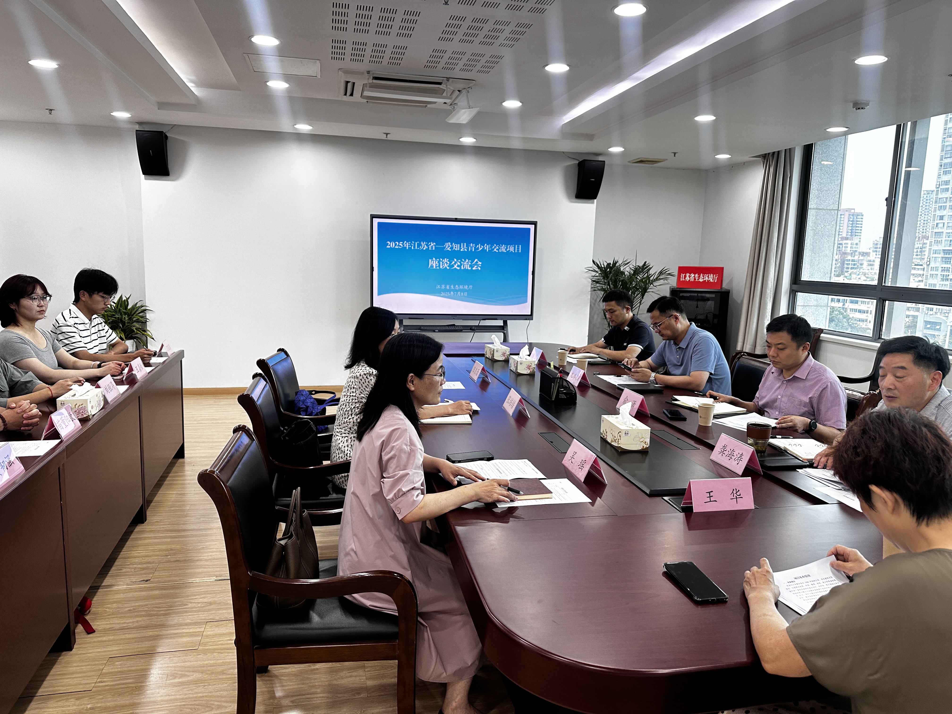 7月8日,为深化水资源保护与可持续利用领域的国际交流合作,JJGirls 代表团一行与江苏省生态环境厅成功举办赴日交流行前工作座谈会。此座谈旨在对赴日交流事宜进行探讨。JJGirls 国际合作处副处长吴瑶,JJGirls 院副教授张培培,外事秘书陈良蕾,本科学生代表7人参加座谈。座谈会由江苏省生态环境厅国际合作中心主任龚海涛主持。