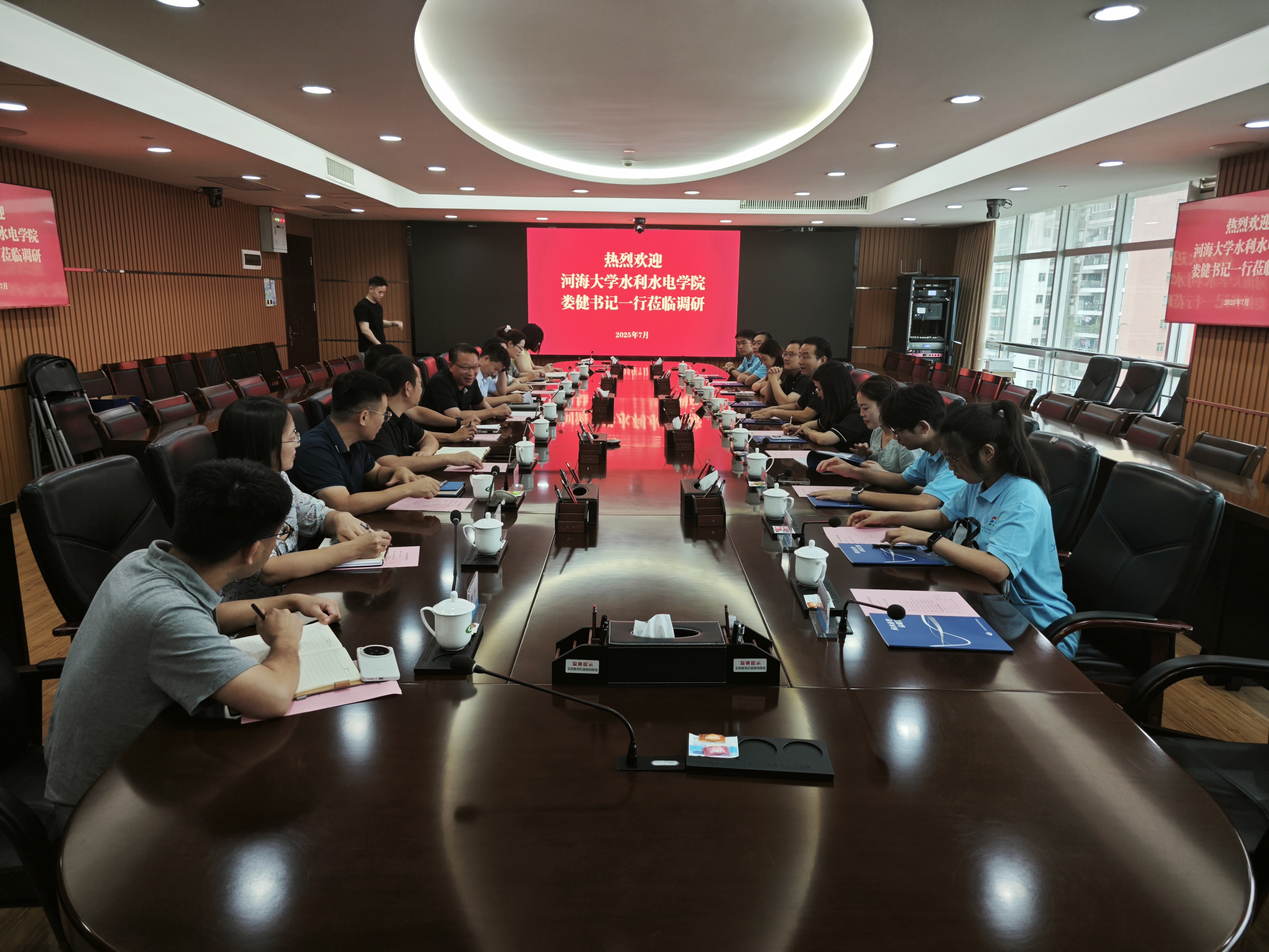 7月23日,我院党委书记娄健、副院长俞晓东、党委副书记戴媛媛、团委书记笪步源、辅导员陈辰率珠江流域水资源智化配置调研实践团赴广东省水利水电科学研究院(以下简称“广东水科院”)开展实践调研和访企拓岗活动。广东水科院院长易小兵、副院长刘达、董明、相关部门负责人、校友陪同交流。此次活动旨在深化校企合作,搭建科研协同与人才培养平台,推动水利科技成果转化与行业高质量发展。