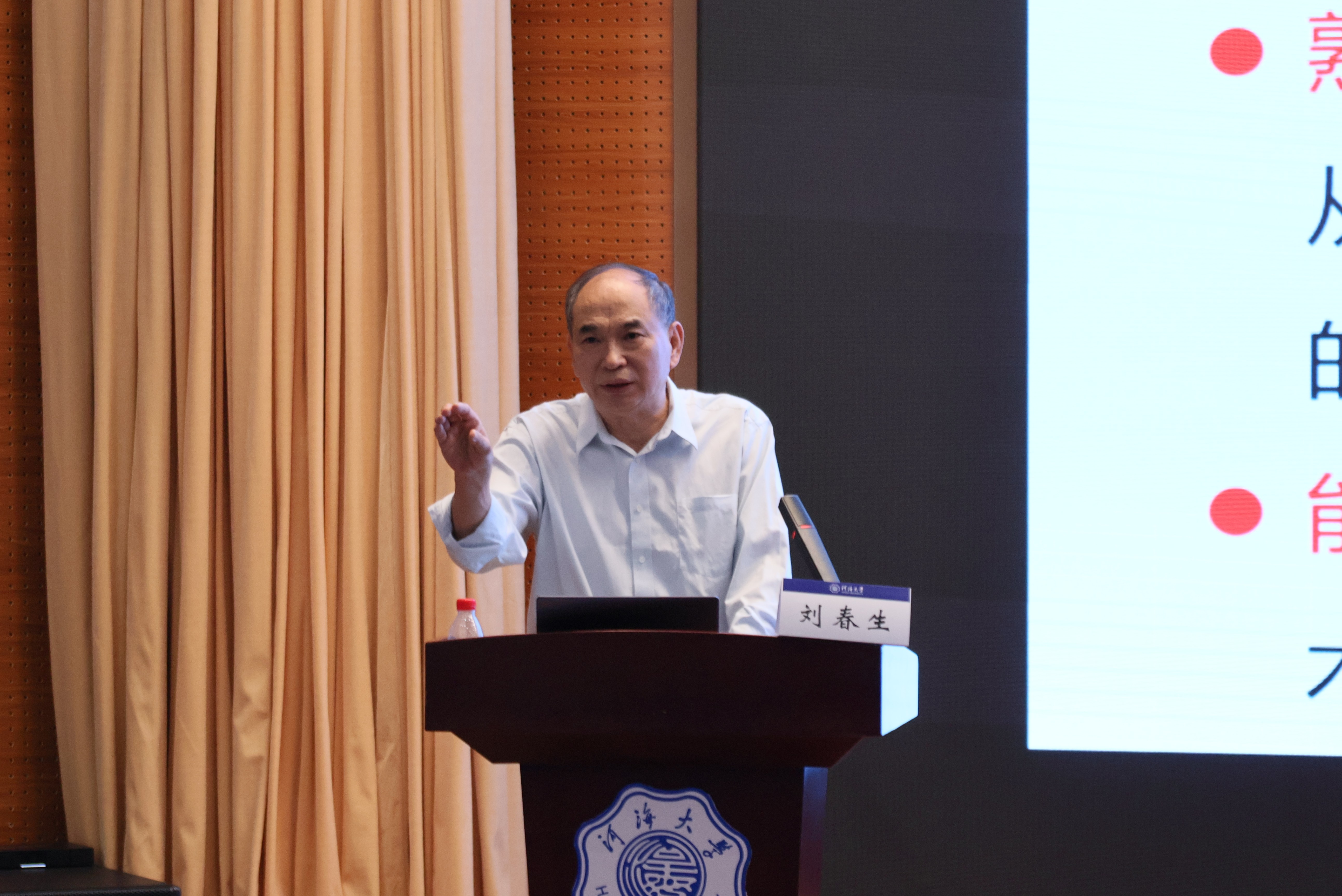 刘春生以《南水北调工程建设管理》为题,为同学们带来了一场跨越时空、纵览山河的精彩分享。他从南水北调工程建设最初的战略构想讲起,细致阐述了南水北调工程从论证、勘察到设计、施工的艰辛历程,尤其深入剖析了工程中遇到的诸多技术难题与创新突破,如穿黄隧洞的复杂施工、渡槽结构的精妙设计等,每一个细节都生动地诠释了“艰苦朴素、实事求是、严格要求、勇于探索”的河海精神。
