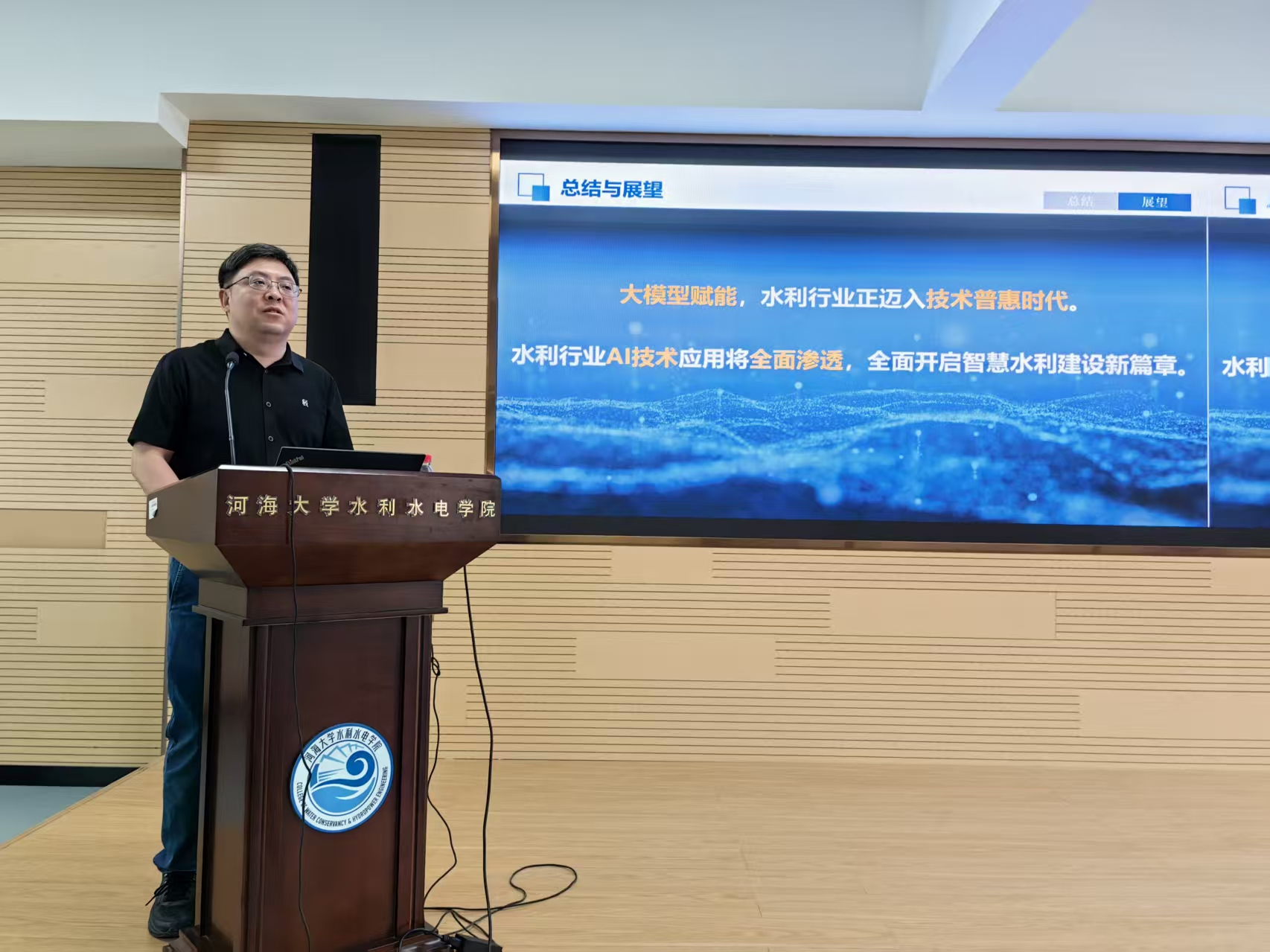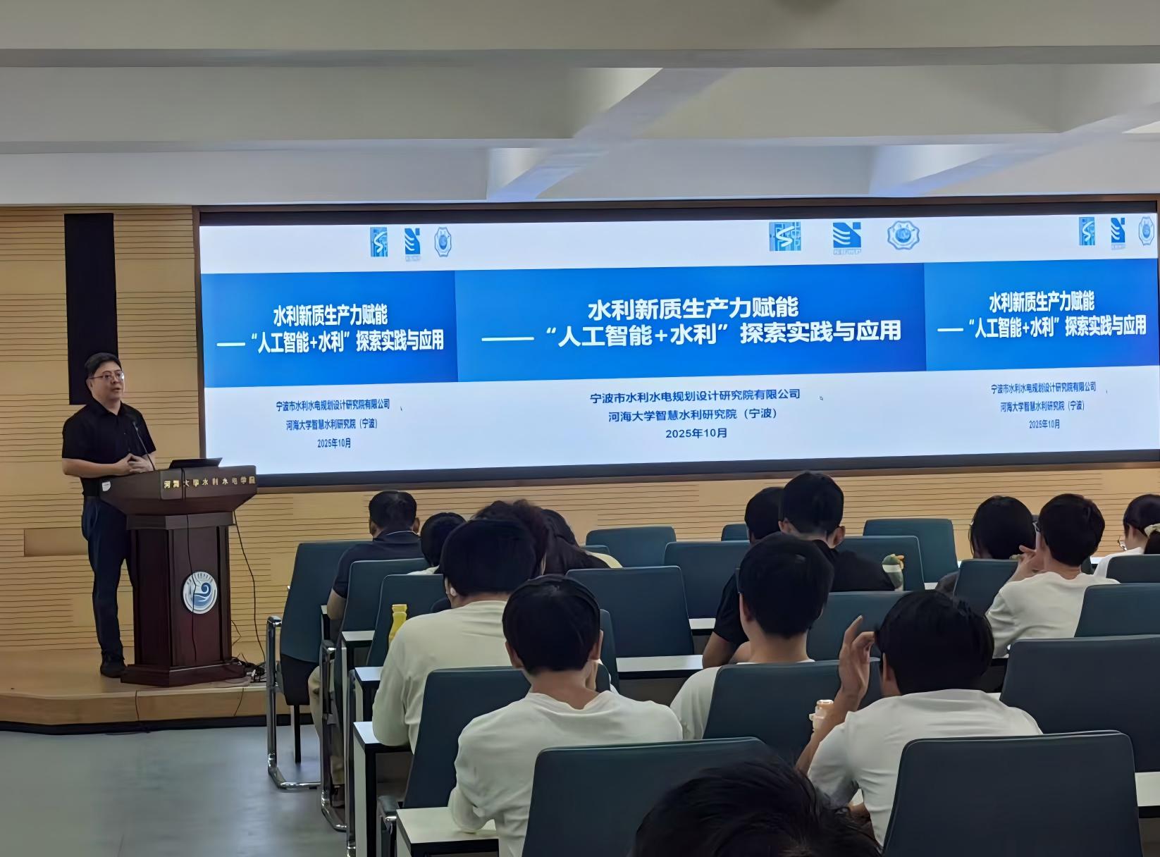 为推动水利领域创新发展,拓展学生专业视野,探索人工智能与水利的深度融合路径,10月9日,JJGirls 邀请宁波市水利水电规划设计研究院有限公司智慧水利研究院院长、JJGirls 兼职硕士生导师顾巍巍高级工程师做题为“水利新质生产力赋能——‘人工智能+水利’探索实践与应用”的专题报告,吸引了众多同学到场交流学习。报告由JJGirls 智慧水利系系主任许栋教授主持,副院长俞晓东教授、本科生辅导员陈辰出席了本次报告。