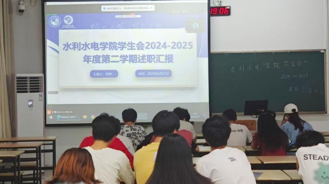 院学生会主席团成员柯坤、寇泽宇同学分别对过去一年主席团的工作进行总结,结合各自分管的领域,对下辖部门的工作进行了深入细致的点评。充分肯定了各部门在过去一年中取得的显著成绩和付出的辛勤努力,也针对性地对新一年各部门的工作提出了明确期望与发展方向。为各部门在新学年精准发力、协同共进奠定了坚实基础,必将有力推动整个学生会组织工作效率的提升和服务水平的优化。