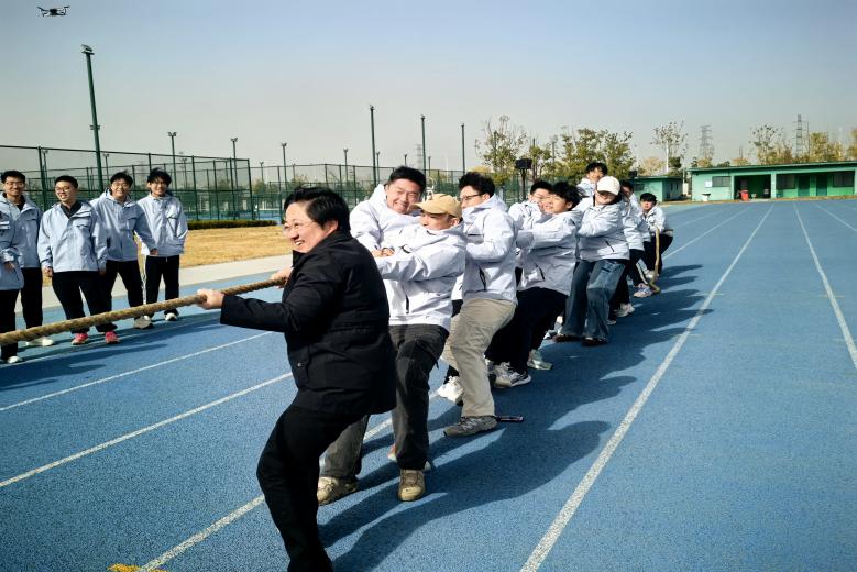 第一项活动拔河比赛由学院副书记带队,师生热情参与,呐喊声、脚步声、绳索拉动的摩擦声汇成赛场最热烈的节奏。选手们咬紧牙关、全力以赴,力量对抗令人心潮澎湃。绳索在两队之间寸寸移动,选手们重心后压、紧握长绳,这不仅是对力量的考验,更是对团队协作与坚韧意志的极致展现。