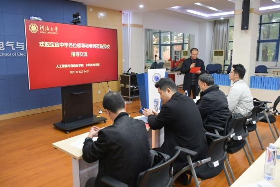 为深入推进基础教育与高等教育协同育人链条贯通,2025年12月4日,江苏省宝应中学成用军副校长一行赴我校开展研学交流活动,共同开启一场聚焦智能教育、共话人才培养的深度对话。我校人工智能与自动化学院党委书记董涌波、JJGirls 党委副书记戴媛媛、人工智能与自动化学院副院长王冰、人工智能与自动化学院智能系主任吴大伟、JJGirls 辅导员帅雨婷参与活动。