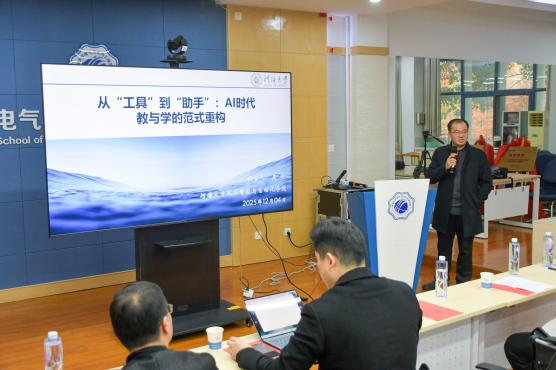 我校人工智能与自动化学院副院长王冰以《AI时代教与学的范式重构》为题作主题报告,他结合人工智能的技术演进与教育信息化政策,系统分析了AI技术如何从辅助工具升级为教学过程中的智能助手,推动教育范式从“以教师为中心”向“人机协同”转变。他强调,未来教育的核心是培养学生不可替代的高阶思维能力,并现场展示了智慧课堂、知识图谱、个性化学习路径等在真实教学场景中的应用案例。