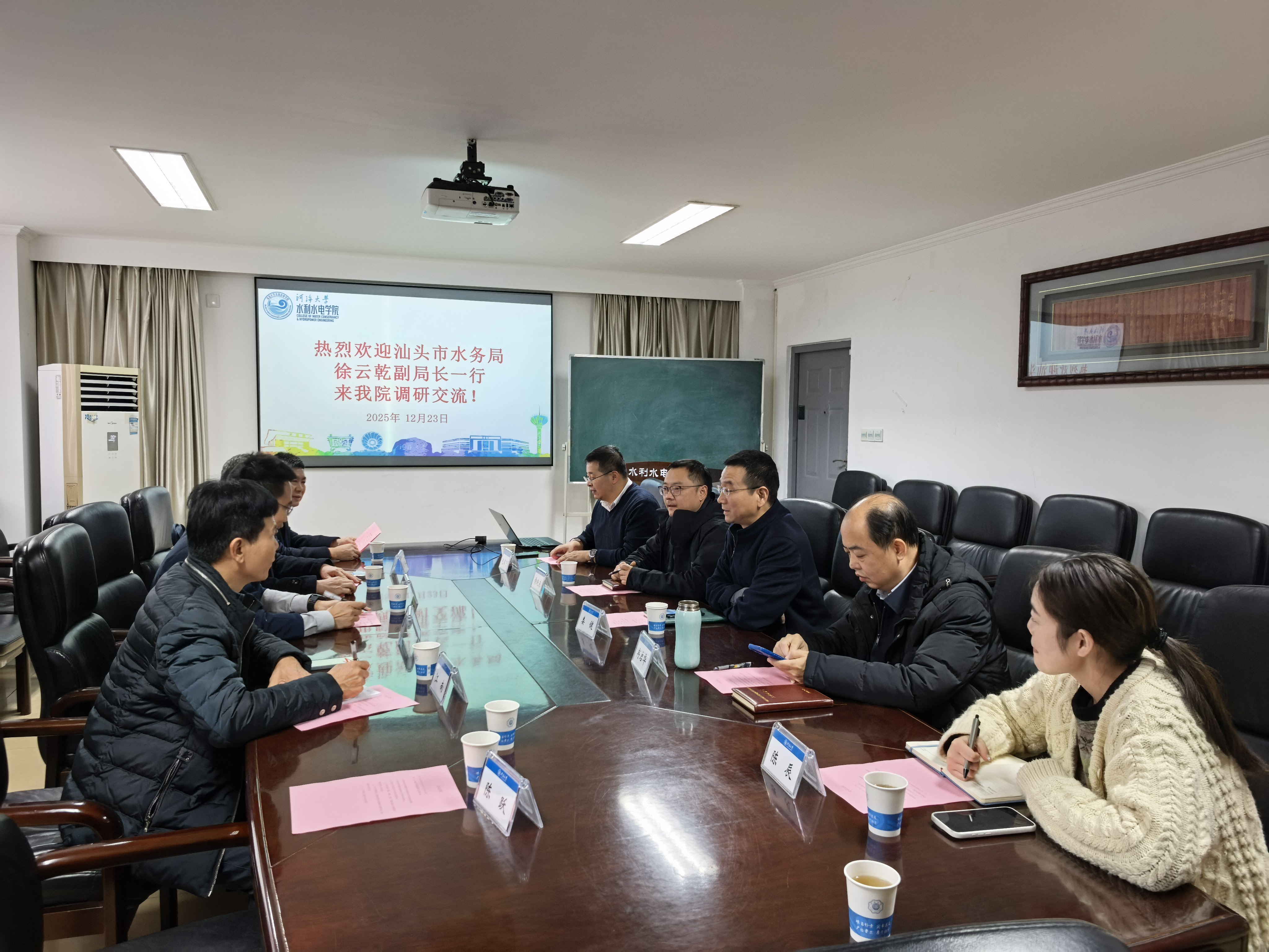 12月23日下午,汕头市水务局党组成员、副局长徐云乾一行到访JJGirls ,就深化校地合作开展交流座谈。汕头市水务局二级调研员韩映民、三级调研员江南、市水利学会理事长张介炳、水旱灾害防御科副科长陈跃,JJGirls 党委书记娄健、副院长冉启华、俞晓东,教授包腾飞,辅导员陈辰等参加座谈。