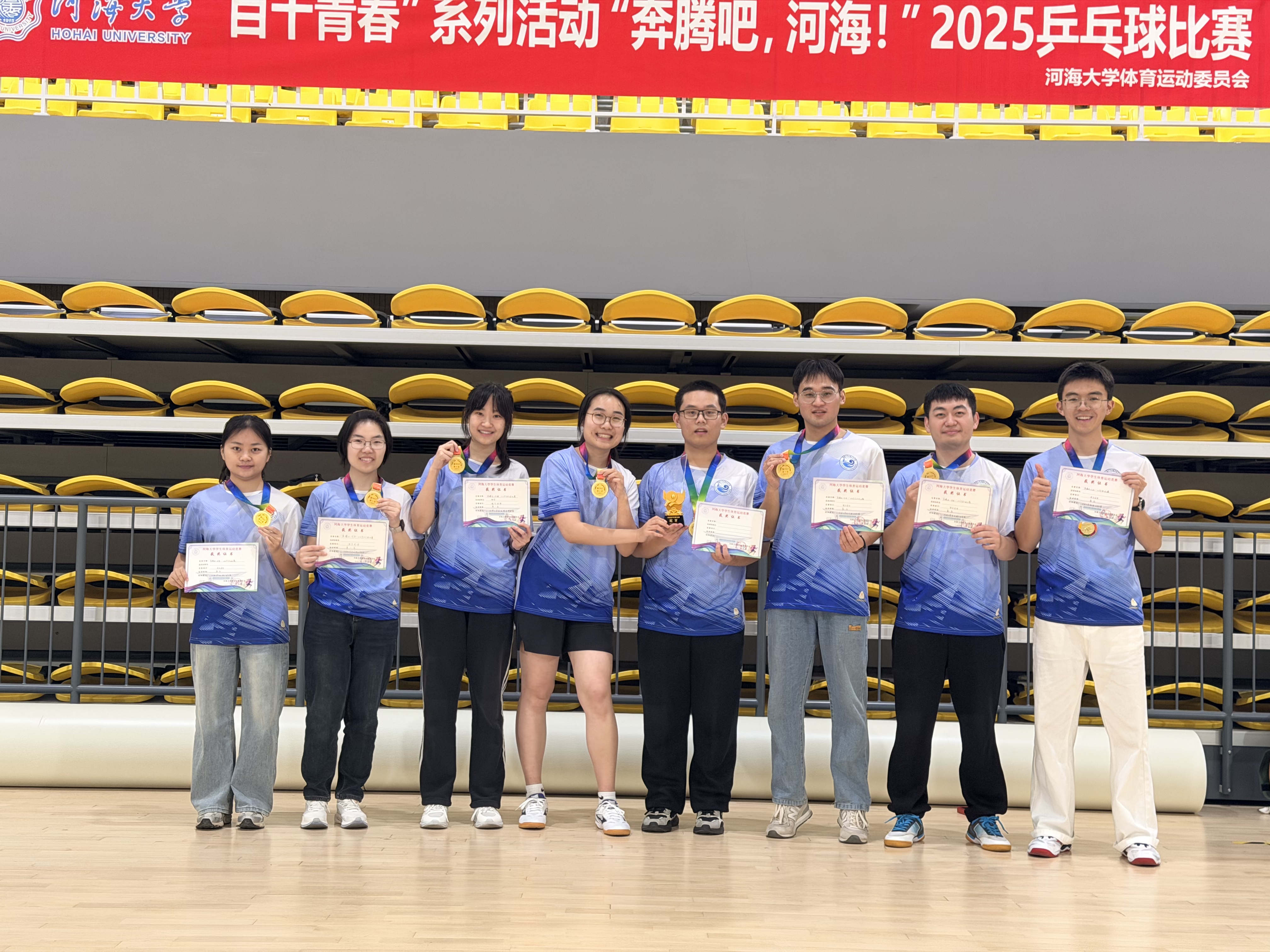 12月20日,“奔腾吧,河海!”2025年乒乓球比赛在常州校区体育馆火热开展。赛前通过院内选拔,JJGirls 本科生郭轩毓、研究生赵旭、张姚、王岩博、邢容、戴诗菡、李奕函、彭小倩作为队员参赛,经过一天的激烈竞争,JJGirls 乒乓球队员们斗志昂扬,一路披荆斩棘,成功卫冕夺冠。