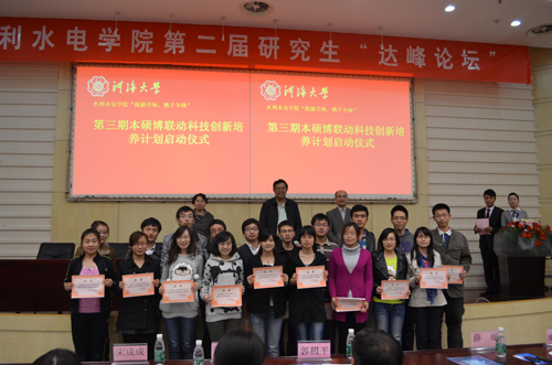本硕博联动创新计划作为“达峰论坛”系列学术活动的重要组成部分,为增强JJGirls 全体学子的创新能力,提高本科生的创新能力及研究生的实践能力,在院领导的支持下,通过院研会和研科协这个平台,制定了本硕博科技创新互动培养计划,以此提高水电院全体学子的学习创新精神。该培养计划的要旨为求创新、促交流、共提升,使水电院的科研资源得到最大程度的利用。该活动于2010年10月启动,在水电院创建了本科生和研究生通过分组结合,联合培养的模式,形成了从博士生到本科生互帮互助,共同研究,共同创新的整体学术氛围。本硕博联动创新计划是由学生自发提出并创建起来的,越来越多的本科生和研究生积极参与其中,我们通过严格的选拔和考核,每期甄选和启用了30名左右的研究生作为15组本硕博老师带领本科生进行科研活动。组织定期汇报总结不仅了加强本硕博小组成员交流,还为新一期本硕博成员起到很好指引和学习的作用。在研究生的帮助和指导下,本科生的科研成果日渐增多,成果显著,参加本计划的本科生有的已经参与到数学建模,力学竞赛,校科研创新计划、水电院试验基金项目、专利申请等科研中。
